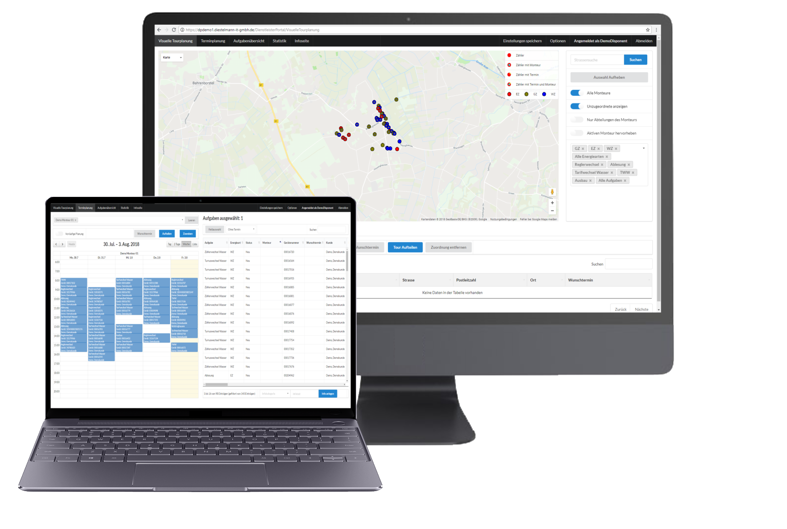 Realisiert ist dies durch eine verschlüsselten Webseite. Diese wird den externen Dienstleistern zur Verfügung gestellt. Die für Ihren Dienstleister bereitgestellten Daten stammen direkt aus Ihrer TA<>SYS Datenbank und werden nicht anderweitig ausgelagert oder dupliziert. Innerhalb des Portals kann der Dienstleister selbstständig Touren planen, Termine hinterlegen und somit die Verwendung der einzusetzenden Smartphones vorbereiten.